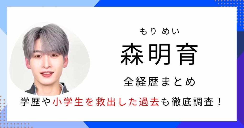 「PRODUCE 101 JAPAN 新世界」(通称:日プ新世界)の参加者・森明育(もり めい)さん。 端正な顔立ちのビジュアルと同時に、過去に小学生を危機から救って警察から感謝状を受け取り、ニュースになっていたことが注目されました。 そんな森明育さんについ... -