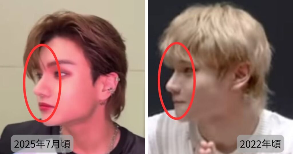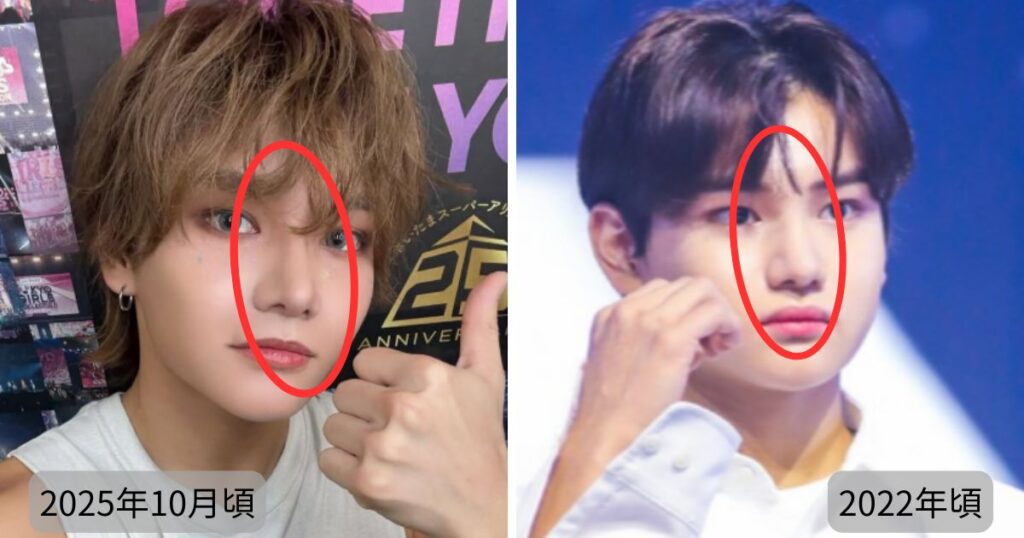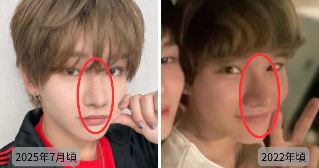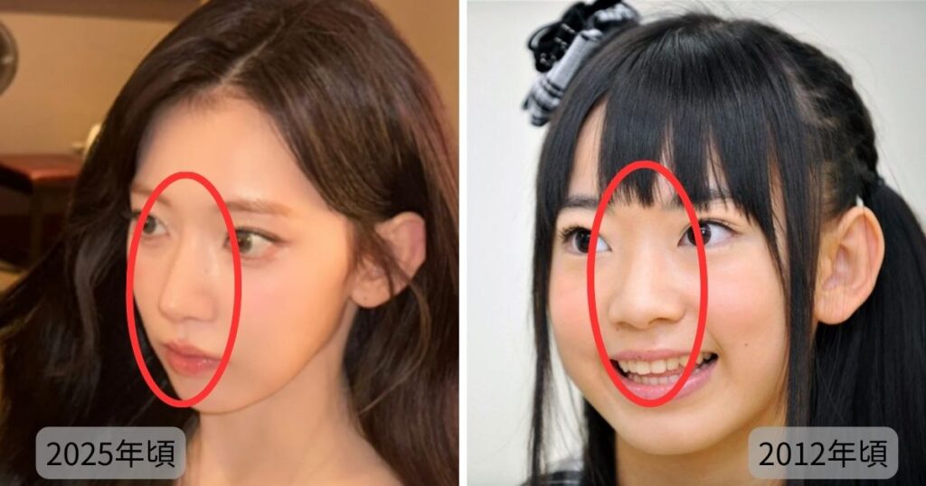 2025年の方が鼻が高くなっているように見えますが、整形をしたからなのか、メイクによってそう見えるだけなのかは判断しにくい結果でした。