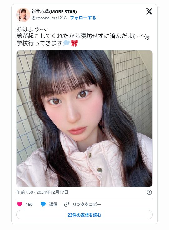 また、新井心菜さんは寝坊ギリギリまで寝ていたところを、弟に起こしてもらったこともあるそうです。