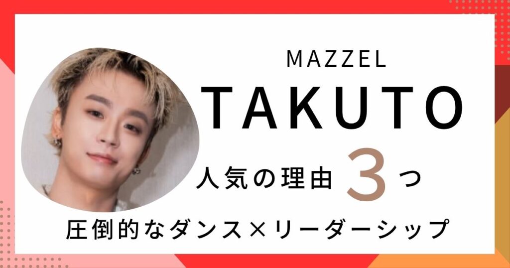 BMSGのボーイズグループ・MAZZEL(マーゼル)のTAKUTO(タクト)さん。 元ダンサーという経歴があり、圧倒的なダンス力でグループ全体のパフォーマンスクオリティをリードしています。 そんなTAKUTOさんについて、もっと知りたい人もおおいのではないでし... -
