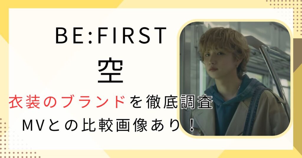 BMSGのボーイズグループ「BE:FIRST」(ビー・ファースト)の楽曲「空」。 ショートムービーのようなMVで、メンバーたちは秋を感じさせるオシャレな私服風の衣装で歌っていましたね。 どこのブランドの服か気になった人もいるのではないでしょうか。 今回は... -