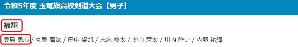 2023年(令和5年度)に行われた玉竜旗高校剣道大会の記録に、具島勇心さんの名前を確認↓