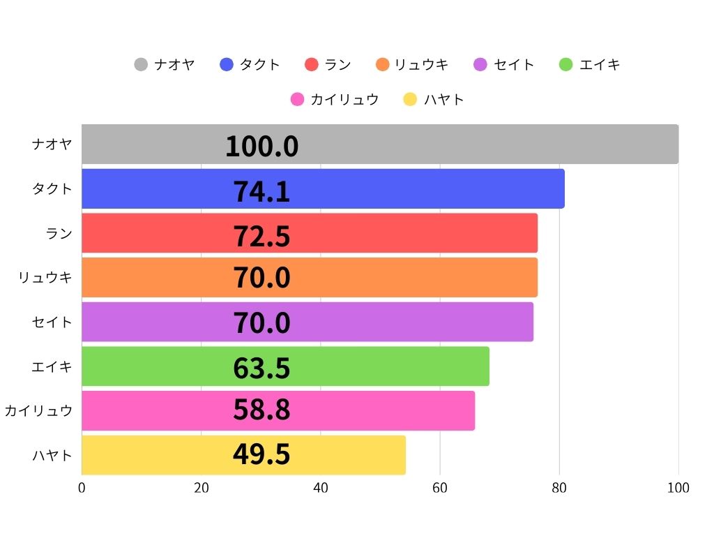 | 1位 | NAOYA(ナオヤ) | 100.0 |