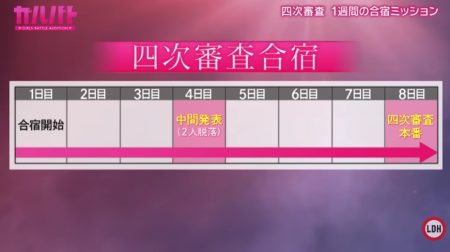 4次審査は1週間の合宿ミッションで、課題曲は「ガルバト」のシグナル曲となる「one-way runway」。