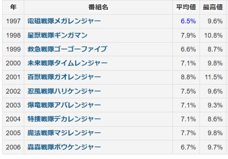 「戦隊シリーズ」の放送終了理由として噂されているのは、視聴率の低迷です。