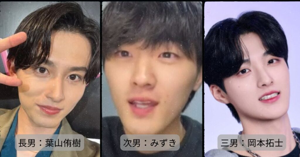 岡本拓士さんは葉山侑樹さんとは2歳差で、みずきさんとは同い年の年の近い3兄弟です。