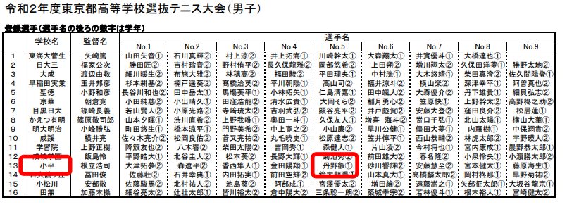 このことから、高校でテニス部に入っていた可能性は高く、東京都高等学校選抜大会に出場していたと思われます。