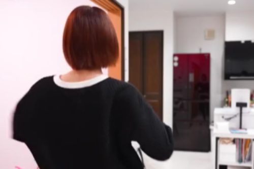 自宅のキッチンの反射した姿がうっすら映る冷蔵庫の前で練習していたそうですよ。