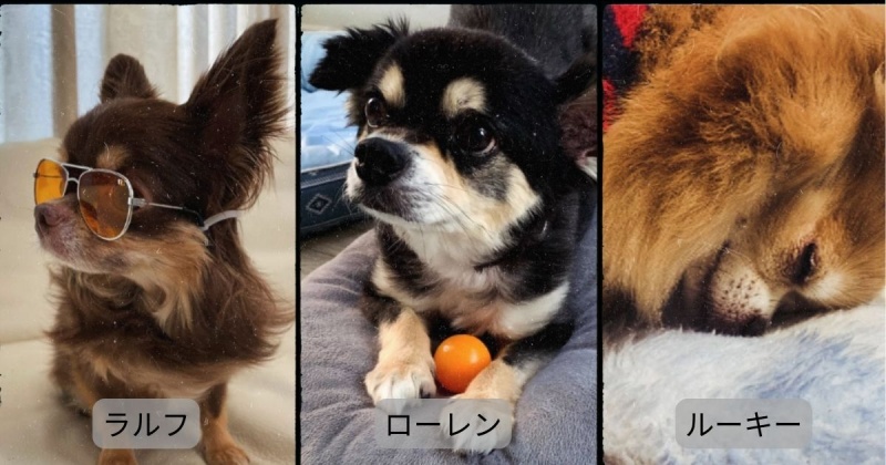 チワワのラルフとローレン、そしてポメラニアンのルーキー。