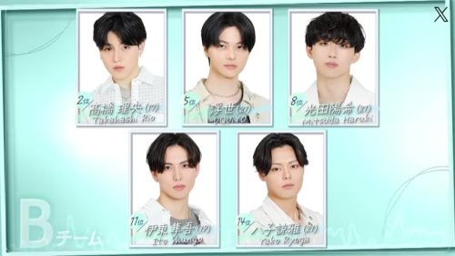 個人順位に加え、チーム順位も付けられ、1位のチームは個人順位に関わらず全員審査通過というシステムでした。
