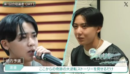 渡邊奏さんは、1次審査である書類・歌唱審査と2次審査の課題曲の歌唱審査を通過して、31人の予選通過者に選ばれました。