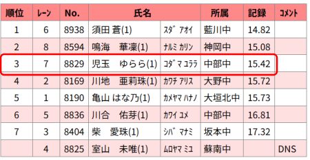 2019年に行われた岐阜県中学校学年別の陸上競技大会で、ユララさんの同姓同名が100m走に出場しているのを発見。